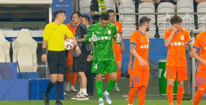 09月12日讯 中超第24轮,上海申花vs山东泰山。下半场比赛开始前,王彤还在与主裁判麦麦提江交流上半场马纳法的手球。